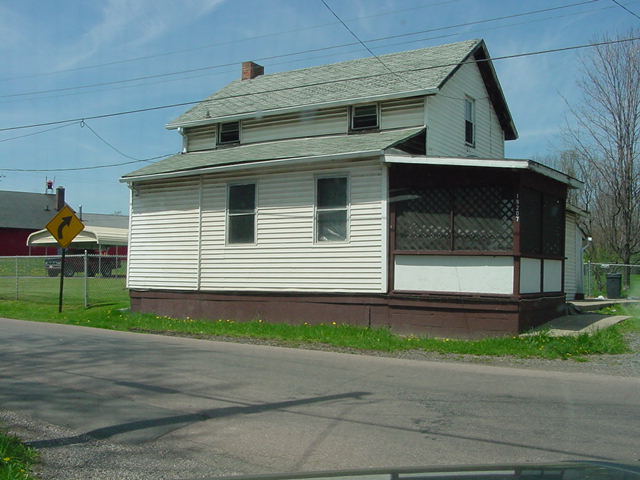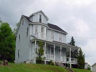 Take Left Fork, House Up On Hill, Lite Blue Victorian On Right.